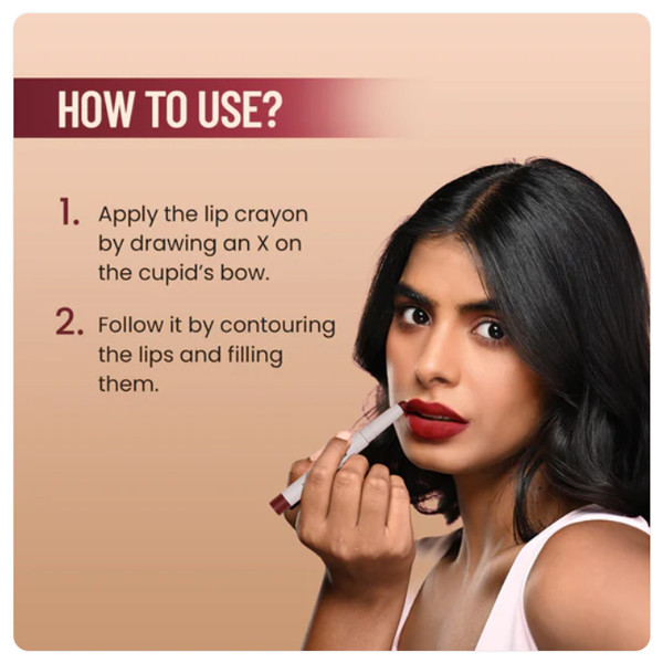 Start by making an X on the cupid’s bow with the lip crayon